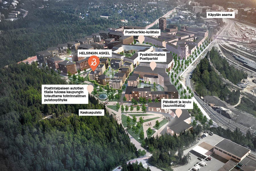 Uudiskohteet Pasilan Postipuistossa kutsuvat urbaanin vehreään kylätunnelmaan