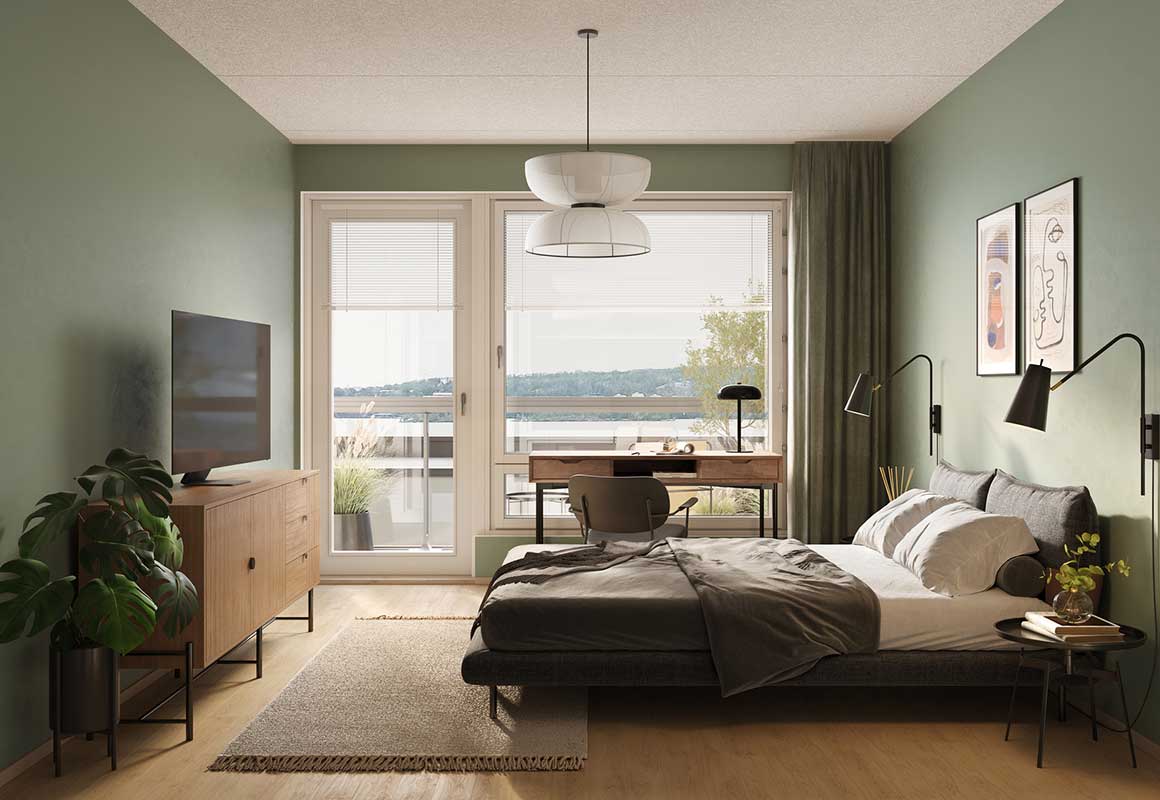 Esimerkiksi suuremmissa asunnoissa asukas voi valita, toteutetaanko kotiin yksi erityisen tilava makuuhuone vaatehuoneella vai useampi pienempi makuuhuone tai työtila. Myös kylpyhuonetilat tarjoavat joustavuutta: monissa asunnoissa on mahdollista valita perinteisen saunan sijaan käytännöllinen kodinhoitopiste kaapistoineen ja työtasoineen.