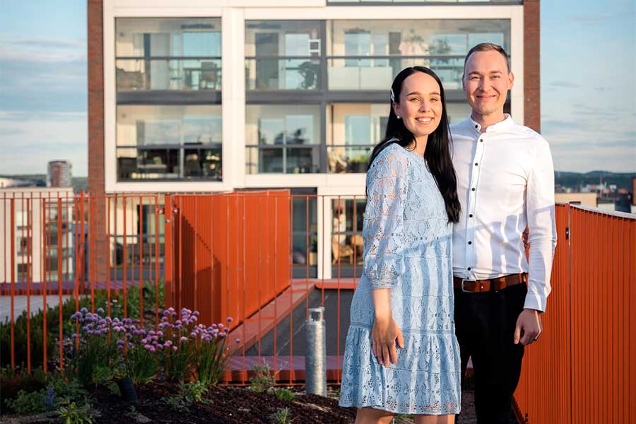 ”Aluksi oli yhteinen haave, joka muuttui todeksi yksi aurinkoinen päivä, kun päätettiin, että Laiturista tulee uusi kotimme. Ollaan asuttu kolme vuotta viereisessä talossa ja oltu matkassa mukana paalutusvaiheesta asti”, 27-vuotiaat uuden kaksion onnelliset omistajat Saara Kemppainen ja Markus Niskanen kertovat.
